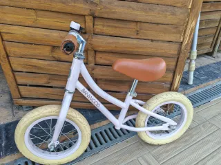 Bicicleta de equilibrio Banwood de color rosa, ideal para los más pequeños. - Marco de acero ligero. - Sillín ajustable en altura. - Ruedas de goma maciza. - Puños de cuero sintético. Patín 3 ruedas para iniciarse, marca oxelo, dechatlon, cuerpo verde claro