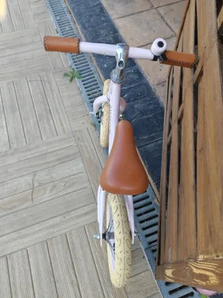 Bicicleta infantil de color rosa, ideal para los más pequeños. Diseñada para aprender a pedalear con seguridad. - Manillar blanco con puños rosas. - Sillín blanco con diseño floral. - Ruedines laterales para mayor estabilidad.