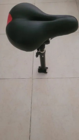 Sillín para patinete eléctrico . Se divide en 3 piezas , fácil instalación sin herramientas . Con amortiguador y altura regulable. Diseñado para ofrecer comodidad durante tus trayectos. No se ha usado nunca . Compré el patín y al final lo devolví por qué no me gusto. - Color: Negro y rojo. - Material: Cuero sintético y aluminio NO SE INCLUYE EL PATÍN