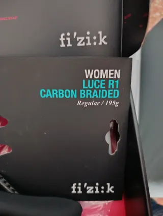 Sillín de ciclismo Fi'zi:k Luce R1 para mujer. - Modelo: Luce R1 Carbon Braided. - Peso: 195g. - Color: Negro con detalles en gris. - Diseño ergonómico para mujer. - Tecnología Spine Concept.