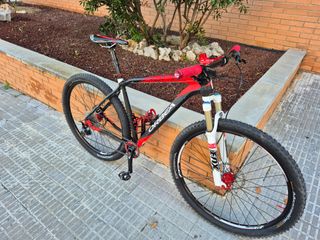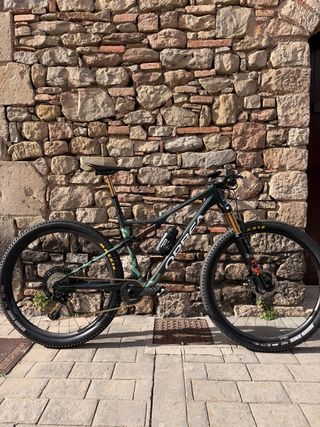 Orbea Oiz M10 TR Fox Kashima 120mm de carbono. - Cuadro de carbono. Talla M - Suspensión Fox Kashima de 120mm. - Tija telescópica de 150mm. Kit completo Kforce con Manillar y Potencia carbono tope gama FSA. Sillín Selle Italia SLR carbon. Vinilada. Ruedas completas con neumáticos casi a estrenar por haberla usado con otras ruedas custom. Bielas XT de origen a estrenar. El cambio de serie XTR con muy poco uso por haber llevado electrónico. Ambas suspensiones recién hecho mantenimiento. Pequeño roce en la maneta de freno que se ve en la foto y pequeño picotazo solo pintura cuadro. La bicicleta se encuentra en Toledo.
