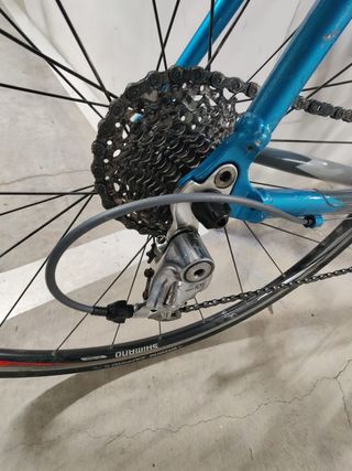 Bicicleta de carretera Orbea Aqua en talla 51. Ideal para ciclistas que buscan rendimiento y comodidad. - Cuadro de aluminio. - Componentes Shimano. - Ruedas de perfil medio. Sillín nuevo Fizik, cambio Shimano Ultegra. Cuadro con alguna muesca y perdida de pintura. Cinta para cambiar y requiere ajustar desviador para cambio de plato.