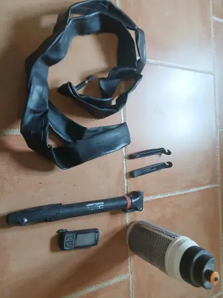 Bicicleta Orbea Dakar. - Cuadro de aluminio. - Ruedas de 26 pulgadas. - Frenos de Zapata nuevos julio 2025 - Suspensión delantera. Rueda delantera al 70% trasera al 50% Pedalier bielas cadena casette piñones y platos 2024 Cambio Shimano acera 3x8 Defectos el cable que va a los platos hay que cambiarlo en breve sillín gastado algo de óxido donde los cuernos y los números de los cambios cuesta un poco verlos por suciedad interior La cambio porque me está pequeña actualmente la sigo usando porque estoy esperando a la nueva Todo el mantenimiento está echo emotion peñaveran