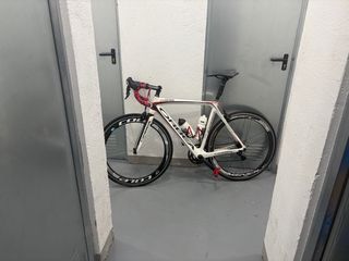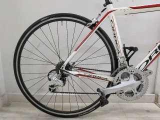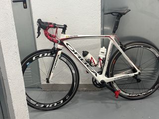 Bicicleta de carretera Orbea orca blanca con detalles en rojo. - Cuadro de carbono. - talla 53 -Tija sillín carbono aero -manillar carbono - sillin selle italia - Ruedas de perfil. - Portabidones incluidos. Se entrega con la revisión hecha cambiados cables y camisas y dos juegos de llantas unas de carbono de 50mm y las originales las de carbono con el casett nuevo tambien las 4 cubiertas nuevas unas con 100km y las que estan montadas en las de carbono a estrenar tambien doy manillar de origen lista para hacer kilómetros