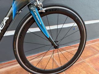 Bicicleta de carretera Orbea Orca M20-PRO Equipo. 2019. Comprada en 2020. Talla 53 (mido 1,75m). - Cuadro de carbono. - Grupo Shimano Ultegra. 50-34, 11-32. - Ruedas de carbono Elite 50mm. Rodamientos cerámicos. Radios planos. - Pedales Look. - Sillin Prologo Dimension 143. - Manillar Pro PLT. - Soporte para ciclocomputador integrado en la potencia. - Roces en la pintura (no en el carbono). - Revisada en Vibike (Vitoria).