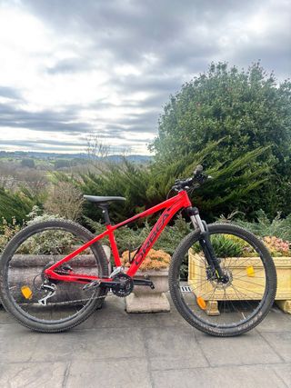 Bicicleta Orbea con un llamativo color rojo, ha sido pintada. - Cuadro de aluminio. - Horquilla delantera. -Neumáticos Kendra -frenos de disco mecánicos -26 pulgadas -pedales,marchas,cadenas,puños,sillín y cambios nuevos la bici -7 marchas y 3 de plato -bici en perfecto estado -muy cómoda