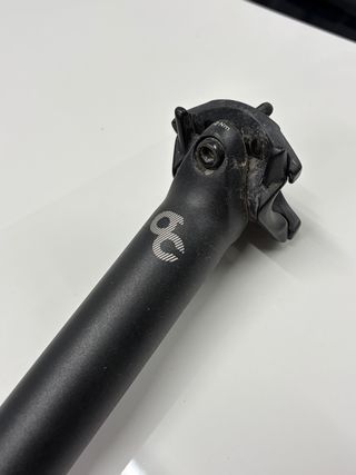 Tija de sillín Orbea SPXP10S de carbono. - Longitud: 350 mm - Diámetro: 27,2 mm - Retraso (Setback): 20 mm - Marcaje de altura con escala. - Indicador de inserción mínima. Se ha usado una vez