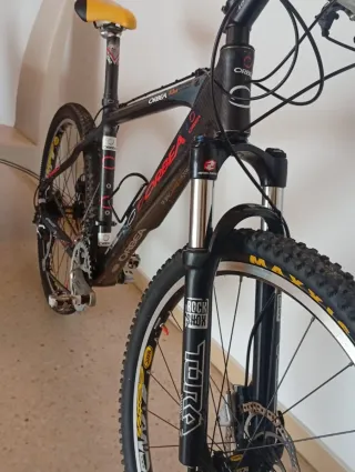 Bicicleta Orbea Oiz MPRO de doble suspensión. - Cuadro de carbono tope de gama. - Ruedas DT Swiss carbono - Neumáticos Vittoria Barzo y Mezcal. - Horquilla y amortiguador Fox Kasima 32 tope de gama -Cambio electrónico GX -Bielas de carbono -Manillas de carbono -Tija telescópica -Sillín antiprostático Selle Italia -Puños Red Monkey Está como nueva NEGOCIABLE