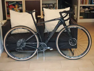 Bicicleta de gravel Cannondale Topstone Carbon en color negro. Talla M (170-185cm de altura aprox) - Cuadro de carbono. - Transmisión SRAM Apex XPLR 1x 12v - Plato 40. Casette 11-44. - Ruedas DT Swiss G540. - Sillin fizik Comprada en agosto 2025. Garantía y tan solo 450 kms. Accepto cambio por bici carretera Gravel bikepacking specialized trek cube megamo canyon bh orbea