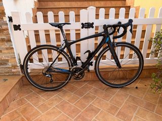 Bicicleta de carretera BH EVO ULTEGRA CARACTERÍSTICAS: Cuadro: BH Evo Carbon. Horquilla: BH Evo Carbon. Mandos: Shimano Ultegra RD-R8000 Desviador delantero: Shimano Ultegra RD-R8000 Desviador trasero: Shimano Ultegra RD-R8000 Frenos: Shimano Ultegra RD-R8000 Cassette: Shimano Ultegra RD-R8000 Manillar: Integrado carbon Toseek Sillín: Prologo Kappa Cubiertas: Fincci Conna (3mm antipinchazos)(recién puestas) Pedales: Look keo Talla: M Colores: Negro mate-azul
