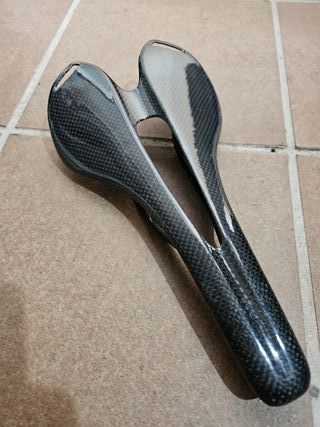 Sillín de bicicleta fabricado en carbono, destacando por su ligereza. Fibra de carbono (tanto el propio sillin como los railes) Diseño ultraligero (probablemente el mas lijero del mercado) Aerodinamico