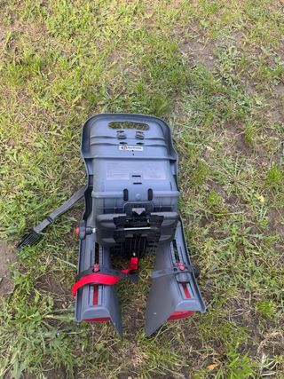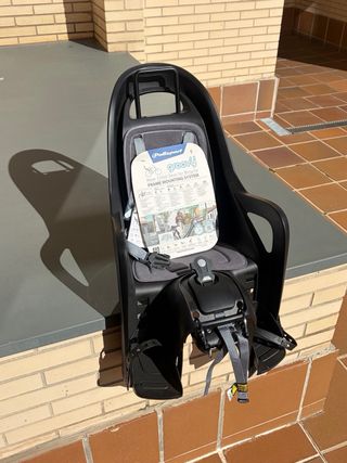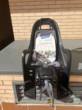 Asiento infantil para bicicleta marca Polisport, modelo Groovy, sin estrenar. - Color negro. - Sistema de montaje en el cuadro y adaptable a tubos redondos y ovalados desde Ø28 a 40 mm. - Incluye arneses de seguridad y reposapiés ajustables 4 posiciones. - 3 posiciones del asiento para adaptarse al tamaño del niño adelante y atras. - Cojín impermeable, para que resulte más cómodo y sea más fácil de limpiar. Precio decathlon: 49,99€