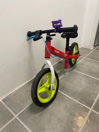 Bicicleta infantil sin pedales color rojo, ideal para niños y niñas en etapa infantil. Perfecta para equilibrio, iniciación y aprendizaje antes de pasar a bicicleta con pedales. Incorpora freno trasero y timbre, lo que la hace ideal para que se vayan iniciando con seguridad y confianza en el uso del freno de cara a bicicletas para más mayores. Presenta señales normales de uso, pero es totalmente funcional y todo va perfectamente. Sillín regulable, estructura resistente y ruedas en buen estado. Oportunidad segunda mano. Revisa mis buenas valoraciones. - Marco de color rojo. - Ruedas de color verde lima. - Freno para mayor seguridad.