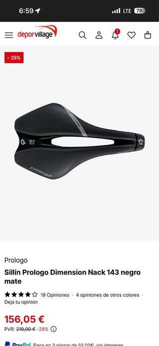 Sillín Prologo Dimension Nack 143 Negro Mate