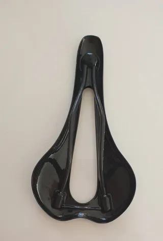 Sillín de bicicleta en color negro, con un diseño moderno y aerodinámico. - Material: Fibra de carbono. - Diseño ergonómico con canal central.