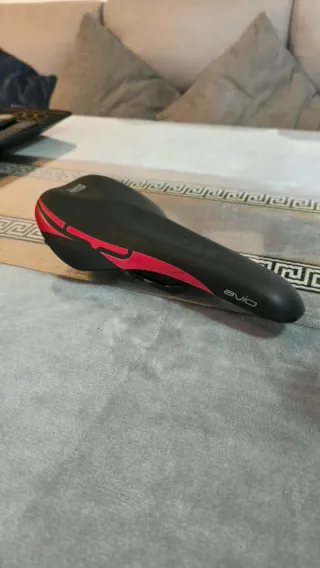 Sillín fabricado en carbono. - Diseño ligero y aerodinámico. - Acabado en carbono con detalles en blanco y rojo.