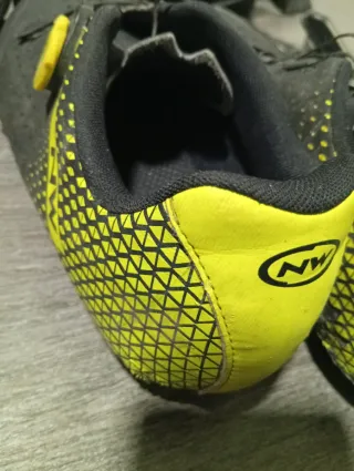 Zapatillas NW de ciclismo con un diseño llamativo en amarillo y negro. Linterna potente a batería,luz trasera,bolso de sillín,kit herramientas,gafas con 3 cristales intercambiables,bote de agua 1/2 litro térmico,guantes y recamaras 29".