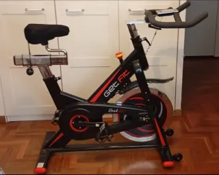 Bicicleta Indoor GET FIT Rush 451 en color negro y rojo. - Diseño deportivo. - Asiento acolchado. - Manillar y sillín ajustables. - Peso de la bicicleta: 48.5Kg - Monitor que muestra, tiempo, velocidad, distancia y calorías. - Peso máximo del usuario: 130Kg.
