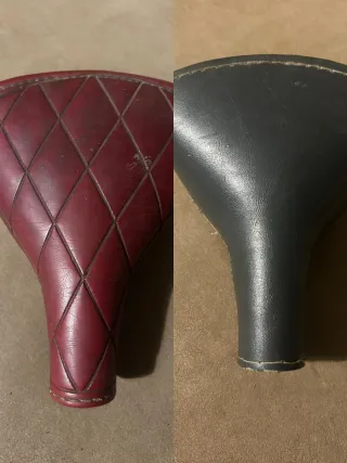 Lote de dos sillines Mobilette y Torrot. Uno es de color rojo y el otro negro. SIN CORTES NI ROTOS - Sillín rojo con diseño acolchado. - Sillín negro. - Compatibles con Mobilette y Torrot etc Clásicos vintage retro varillas antiguos
