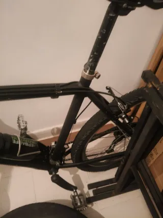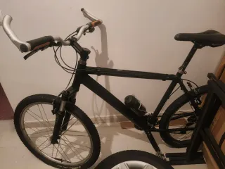 Bicicleta de montaña en color negro. Lleva tiempo parada en el trastero,habría que hinchar ruedas y darle un repaso,me imagino Ruedas de 26 - Cuadro de talla L. - Manillar con puños. - Sillín negro. - Portabidón.