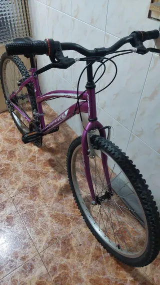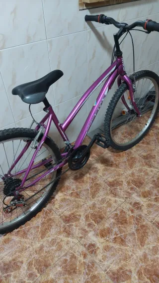 Bicicleta con ruedas de 26 pulgadas. - Cuadro de color morado. - Sillín negro. - Necesita arreglos