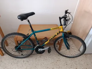 Bicicleta Merida de montaña con cuadro negro y detalles verdes. - Ruedas de 27,5 pulgadas. - Frenos de disco. - Cambio Shimano. Con cuadro de aluminio ligero y resistente, ideal tanto para rutas por pista como para uso diario. Incorpora suspensión delantera que mejora la comodidad en terrenos irregulares y frenos de disco para una frenada segura. La bicicleta funciona correctamente y está lista para usar. Se vende sin sillín ni tija, lo que se ha tenido en cuenta para ajustar el precio. Es una excelente opción para quien quiera montar unas piezas a su gusto o ya disponga de ellas.