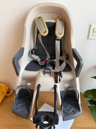 Sillín para bicicleta infantil marca Polisport, modelo Guppy. Diseñado para ofrecer comodidad y seguridad. - Cojín nuevo, usado 2 veces. - Asiento de plástico resistente. - Arnés de seguridad de 3 puntos. - Reposapiés ajustables. - Diseño ergonómico.