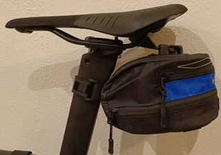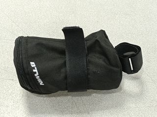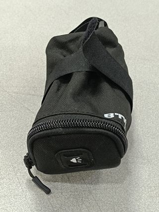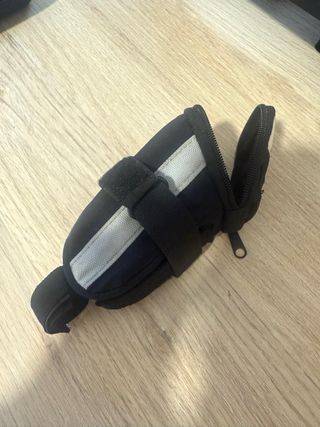 Bolsa para sillín de bicicleta, ideal para llevar objetos pequeños durante tus rutas. Está en perfecto estado y es de color negro. Medida 13cm. x 7cm.