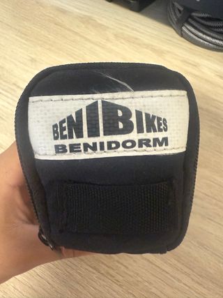 Bolsa de sillín para bicicleta con el logo de Ben Bikes Benidorm. - Color negro. - Cierre de cremallera.