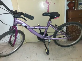 Bicicleta infantil de color morado, ideal para los más pequeños. - Cuadro de metal resistente. - Ruedas de 20 pulgadas. - Sillín ajustable. - Frenos delanteros y traseros.