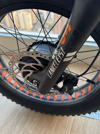 Bicicleta eléctrica con un diseño moderno y funcional. - Batería extraible. - Ruedas todoterreno. - Sillín cómodo. - Portaequipajes trasero y delantero Acelerador de mano, el de pedal no funciona. Frenos de disco nuevos Potencia 250W bateria 36V autonomia de 30 km sin pedalear, velocidad limitada a 30 km/h Precio no negociable