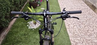 marca bh trail player esta bici es comprada 2009 el cuadro es de aluminio 6061db 85mm. Amortiguador trasero titan air ajust.Horquilla xrc suntour rl 100. Cambio shimiano deore 9v. shimiano alivo .manetas shimiano deore.frenos quad hd1 doble piston 180mm.bielas suntourxcm. ruedas mavic xm729/tita20, diametro 26 pulgadas . manillar fsa xc 282 .Potencia fsa.tija aluminium. sillin sam marco ponza.peso 15 kg y la talla es XL de 175cm a 190cm de alturaen .