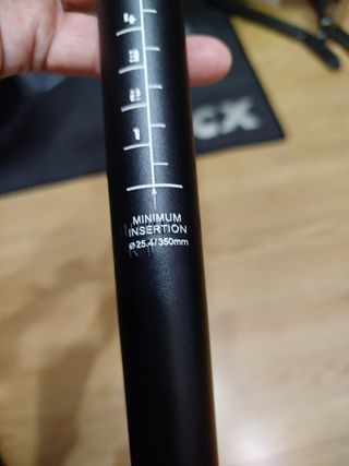 Nueva. Tija de sillín de aluminio para bicicleta. Recoger en Bilbao o envío, más en mi perfil haz un lote y aprovechas el mismo envío - Diámetro: 25.4mm - Longitud: 350mm - Marca de inserción mínima visible.