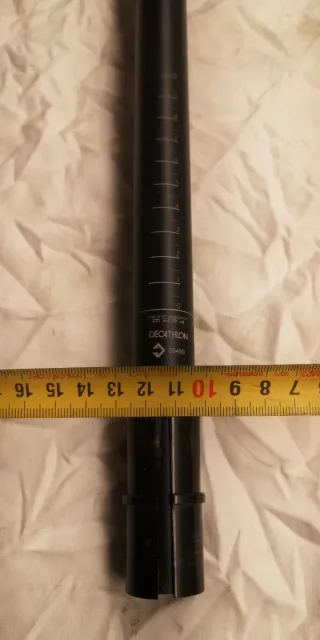 Tija de sillín para bicicleta de la marca Decathlon. Fabricada en aluminio negro. - Marcada con medidas para ajuste. - Diseño robusto. - Diámetro 23,4. - Diámetro CON ADAPTADOR 27,2. - Largo 330.