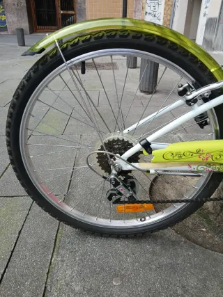 Bicicleta Btwin de paseo para niña, con ruedas de 24 pulgadas. - Color blanco y verde con detalles decorativos. - Sillín ajustable. - Guardabarros delantero y trasero. SOMOS UN PROYECTO DE INSERCIÓN LABORAL, donde encontraras un taller, venta de material y bicicletas de segunda mano a tu medida. Pásate a conocernos en la Plaza MORAZA No 5 Bilbao -Bizkaia- o visítanos en bizieskola. net. RECOGEMOS TODO TIPO DE BICICLETAS. ¡¡¡ No es tu bici!!! Escribe Bizieskola en el buscador de Wallapop y encontraras lo que estás buscando. BH, ORBEA, CONOR, SCOTT, KONA N114