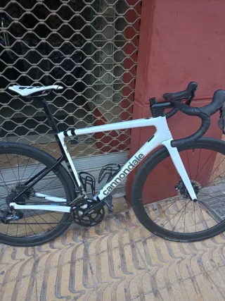Bicicleta de carretera talla 51 Cannondale Supersix Evo, año 2022, con estado impecable. - Cuadro de carbono. - Frenos de disco Ultegra con discos Durace 140 - Ruedas de perfil de carbono Hollowgram 38 perfil, con cubiertas tubeless. Transmisión completa Ultegra bielas con plato 52-36 y cassette ultegra 11-28. Se incluye platos ultegra 50-34 y cassettle Ultegra 11-34 nuevo a estrenar. Kit cableado interno. Sillín prólogo Dimensión cpc.