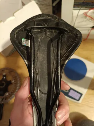 Sillín de triatlón en perfecto estado, ideal para tus carreras. - Diseño cómodo y ligero. - Color negro con detalles en blanco. - Perfecto para bicicletas de triatlón.
