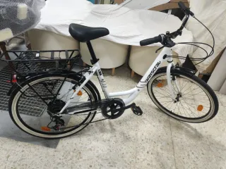 Bicicleta plegable de color blanco, modelo Urban Life PS50. Ideal para desplazamientos urbanos y fácil de almacenar. - Cuadro plegable. - Ruedas de 24 pulgadaa - Sillín marrón - Portaequipajes trasero. Precio algo negociable