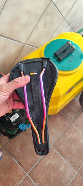Sillín Ergon S/M para Enduro Comp con detalles en arcoíris. usado 2 meses, unico desperfecto en la ultima foto - Diseño ergonómico. - Raíles con acabado rainbow.