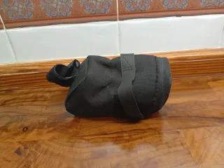 Bolsa para sillín de bicicleta de la marca Bilwin, ideal para llevar herramientas o pequeños objetos. Está en buen estado y es de color negro, con dos camaras. - Se acopla fácilmente al sillín. - Tiene cierre de cremallera. - Material resistente y ligero.