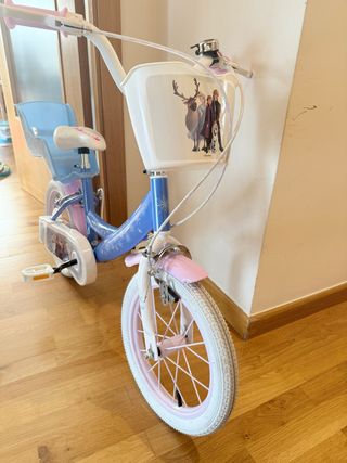 Bicicleta infantil con temática de Frozen, ideal para los más pequeños. La bicicleta es nueva, no tiene uso, puedo envair un video por privado - Diseño con personajes de Frozen. - Cesta delantera. - Sillín y asiento trasero. - Ruedines incluidos. - La puedo enviar por mensajería.