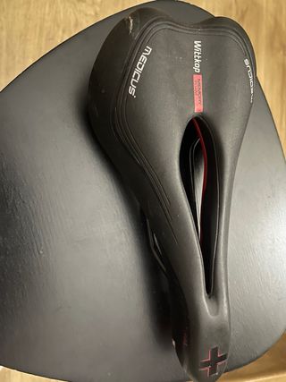 Sillín Wittkop Medicus con tecnología Memory Foam. - Diseño ergonómico con canal central. - Acolchado de espuma viscoelástica. - Marca: Medicus. - Modelo: Wittkop.