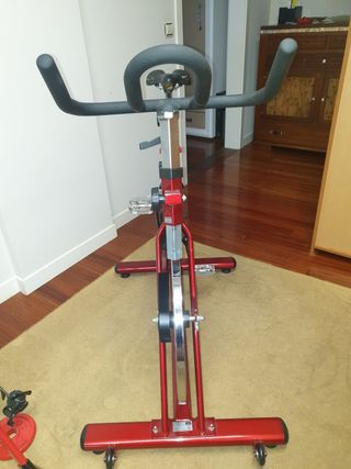 Bicicleta de ciclismo BH indoor para uso doméstico regular. Peso máximo de usuario recomendado: 105 Kg. Volante de inercia: 18 Kg. Sistema de frenado por fricción y bloqueo de emergencia. Transmisión por cadena. Microajuste de la posición del sillín y del manillar (horizontal y vertical).