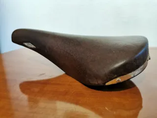 Sillín de bicicleta San Marco Rolls en color marrón. - Diseño clásico y elegante. - Cubierta de cuero. - Detalles metálicos en los extremos. En perfecto estado