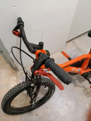 Bicicleta infantil B'Twin Robot 500 de 14 pulgadas. Ideal para los más pequeños de la casa, de 3 a 5 años - Color naranja con detalles de robot. - Sillín negro. - los ruedines tambien van incluidos, se los acabamos de quitar a nuestro niño pero van con la bici