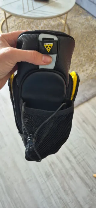 Alforja de sillín Topeak Mondopack Hydro, ideal para llevar tus esenciales en la bicicleta. Su diseño es práctico y funcional. - Color negro con detalles amarillos. - Compartimento principal con cierre. - Bolsillos laterales de malla. - tamaño XL. - unisex.