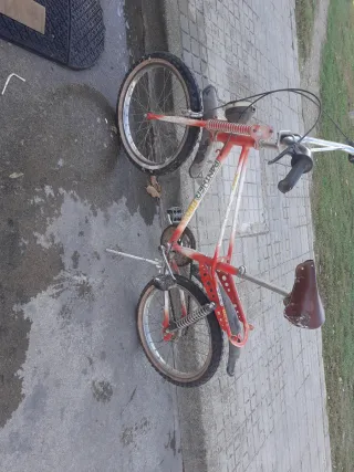 Bicicleta plegable de la marca BH, ideal para proyectos de restauración. - Color rojo. - Ruedas de 16 pulgadas. - Sillín blanco. - Guardabarros delantero y trasero. - Portabultos trasero.