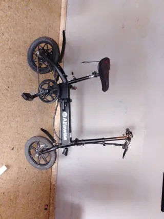 No negociable e ace falta el acelerador I el cargador funcional per fectamente Bicicleta eléctrica AlfaWise de color negro, con un diseño plegable para facilitar su transporte y almacenamiento. Ideal para desplazamientos urbanos. - Ruedas de 12 pulgadas. - Sillín ajustable. - Manillar plegable.