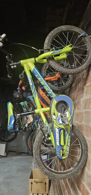 Bicicleta infantil con un llamativo diseño en verde y azul.y naranja. 25€ cada una. Tamaño rueda 16" VERDE : Vendida! - Cuadro de metal resistente. - Ruedas con radios. - Sillín y manillar ajustables.