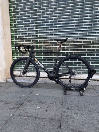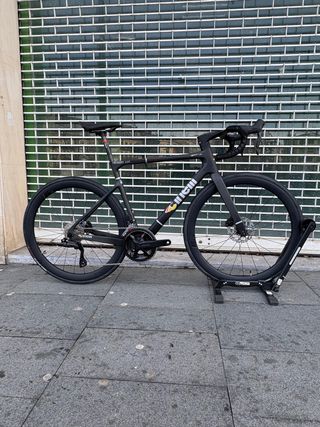 bici caretera aero CINELLI PRESSURE ADR LIMTED BLACK PVP ANTES 4499 € TALLA / M (51) MATERIAL: Monocasco de carbono Columbus TIJA DE SILLÍN CARBONO LIMPIEZA DE NEUMÁTICOS: hasta 700x30 mm HORQUILLA: Columbus Disc 1-1/2” Enrutamiento de cables interno monocasco de carbono FRENO: Freno de disco 105 TRANSMISION SHIMANO 105 DI2 CASSETE 11-34 RUEDAS CARBONO PERFIL 45mm manillar y potencia cokpit carbono